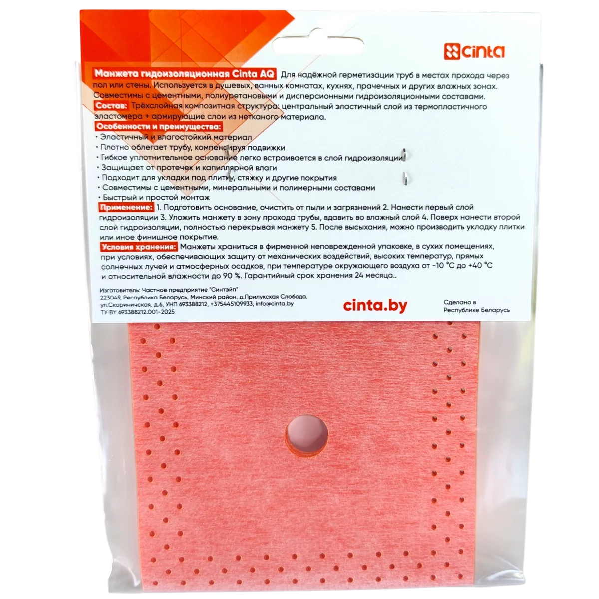 Манжеты Cinta AQ поставляются в прочной фирменной упаковке, защищающей материал от загрязнений и деформации.
